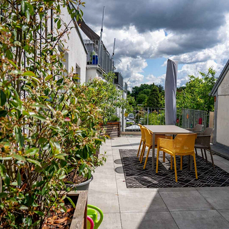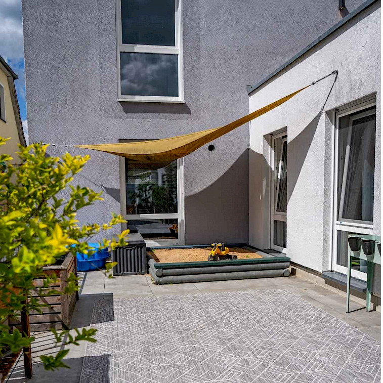 Unsere Kinderintensivpflege-Einrichtung ist zentral in Kahl gelegen und dennoch sehr naturnah. Direkt hinter dem Gebäude beginnen die weitläufigen Kahlauen und eine hübsche Kleingartenanlage, die zum Spazierengehen einladen. Hier finden sich auch ein schöner Spielplatz und Pferdekoppeln mit freundlichen Vierbeinern, die sich immer über einen Besuch freuen.